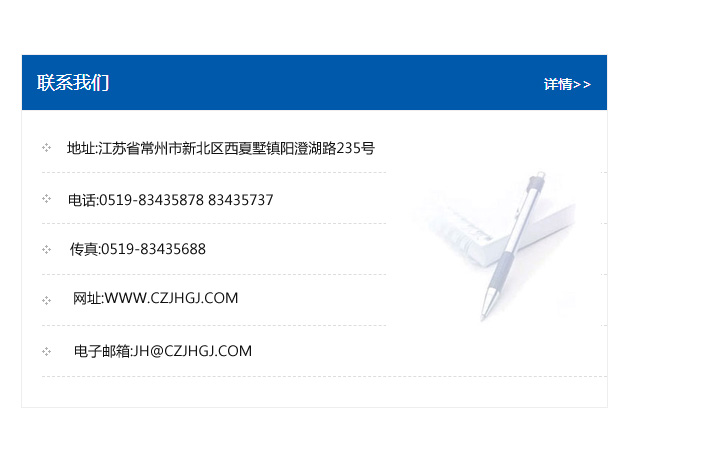 地址:常州市新北區友邦商務大廈1幢16、17層  電話:0519-85101652  傳真:0519-85112595  郵編:213022  網址:www_cz-jiayue_cn.jiepinshop.com  郵箱:xiajifengaa@163.com
